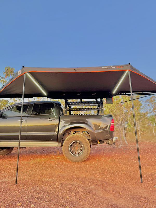 All of our Awnings are made from 320GSM poly-cotton ripstop canvas, this fabric is tough, durable, and weather-resistant, offering premium protection against sun, rain, and tough outback conditions.